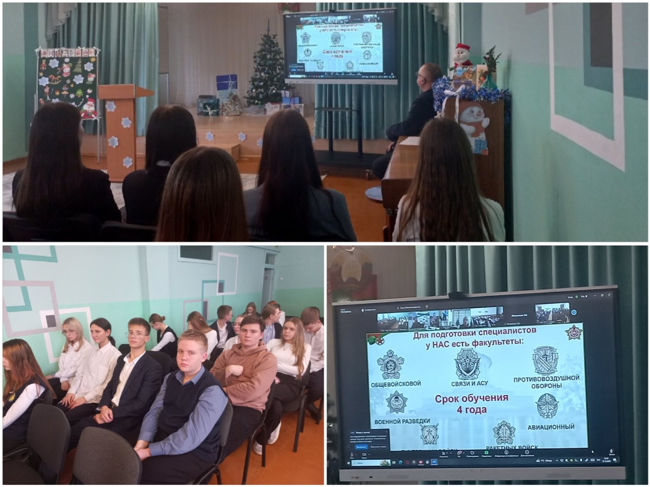 10 декабря учащиеся средней школы №2 г.Слонима стали участниками телемоста между учреждениями общего среднего образования, военными комиссариатами Гродненской области и главным управлением образования Гродненского областного исполнительного комитета. Порядок приема и обучения, условия проживания в военной академии, а также общение в рамках диалоговой площадки «Вопрос-ответ» таким запомнится ребятам данная встреча.