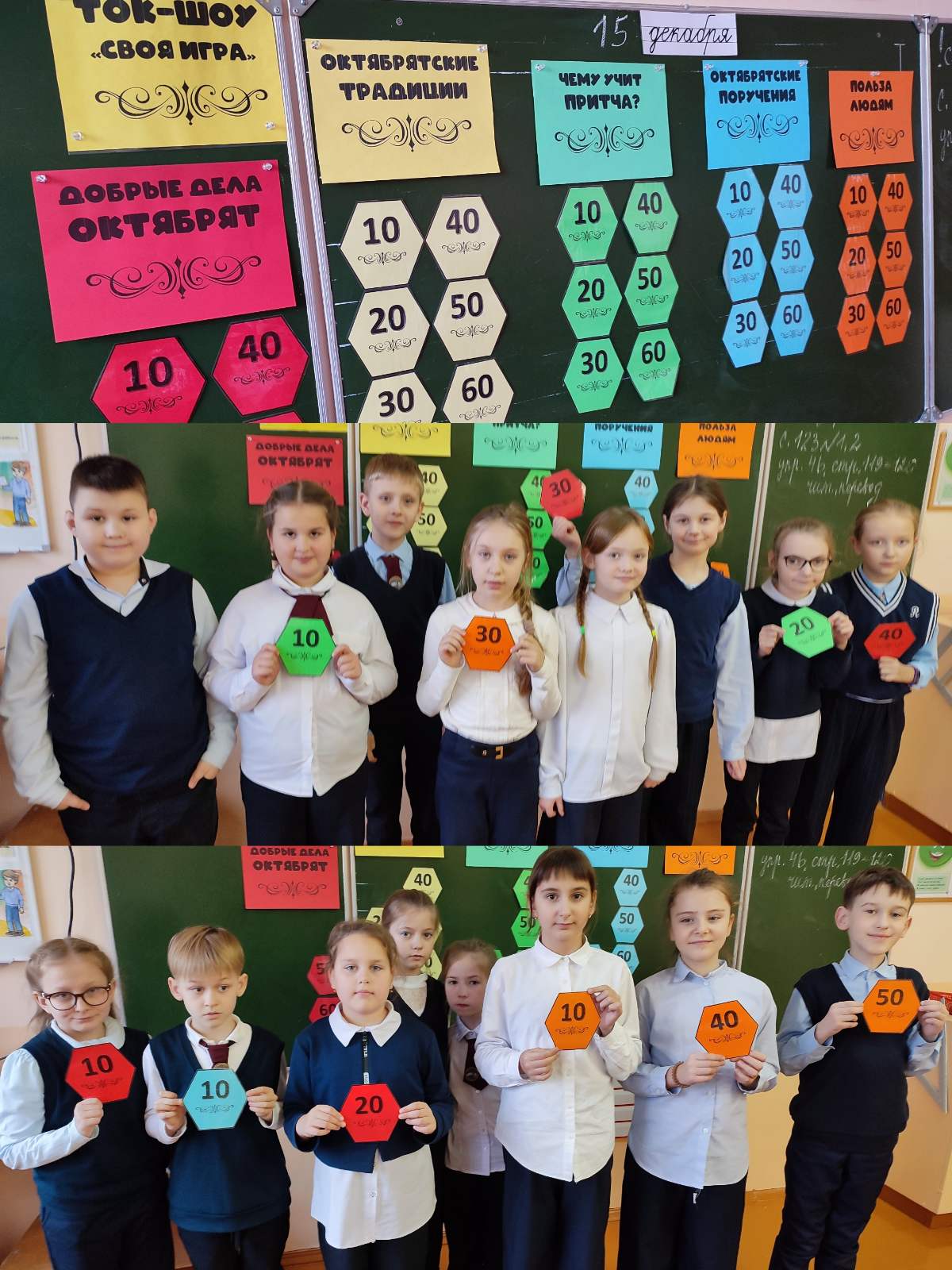 15 декабря в рамках проекта "Я.Моя семья. Моя Родина" в 3а классе прошла "Своя игра" по теме "Традиции октябрят". В ходе соревнования ребята повторили традиции октябрят, поговорили о том, какую пользу людям и окружающей природе могут приносить члены БРПО.