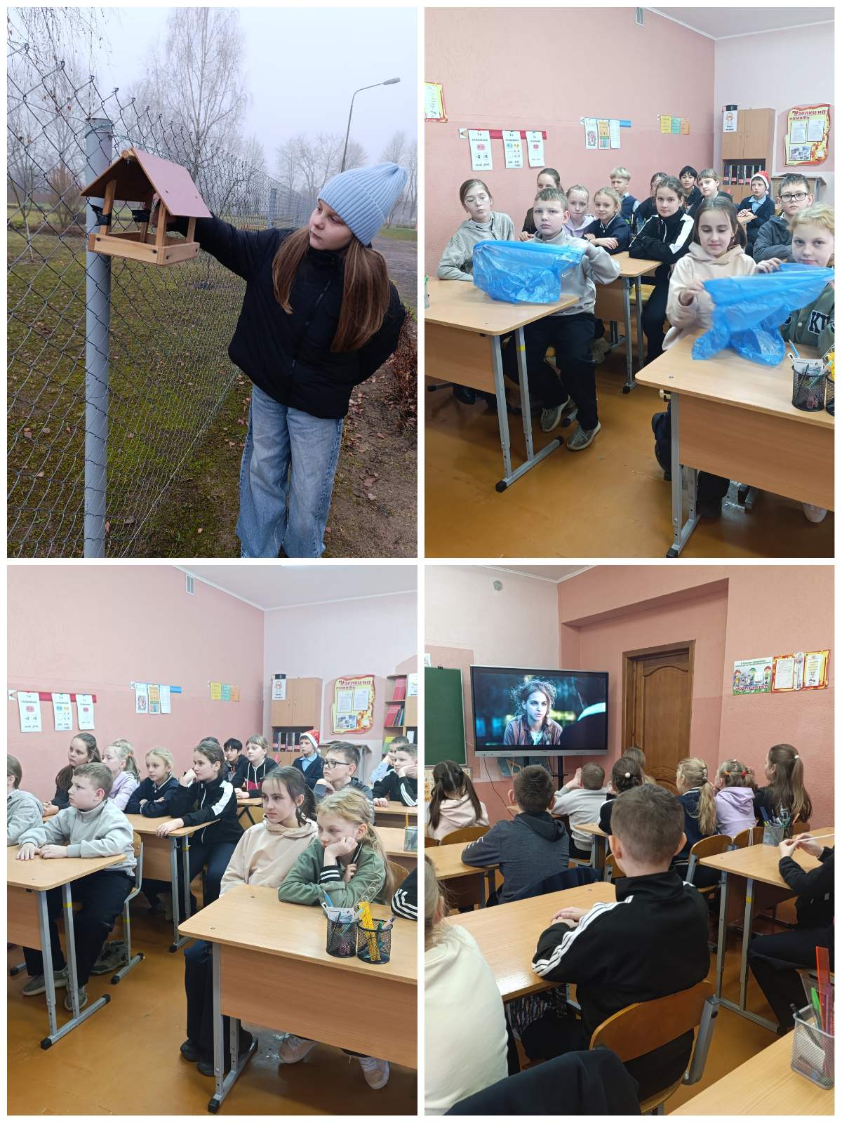 В рамках проекта "Киноуроки в школах мира" в субботу в 4х классах был организован просмотр фильма " Там, где мечтают медведи". Дети анализировали поступки героев, работали над терминами чувство дружбы и долга. В силу возраста размышляли над экологией и чувством долга по отношению к природе. Приняли и осуществили решение: повесить под окнами кабинета кормушку и распределили ответственных по дням недели. А также дружным составом собрали мусор на пришкольной территории.