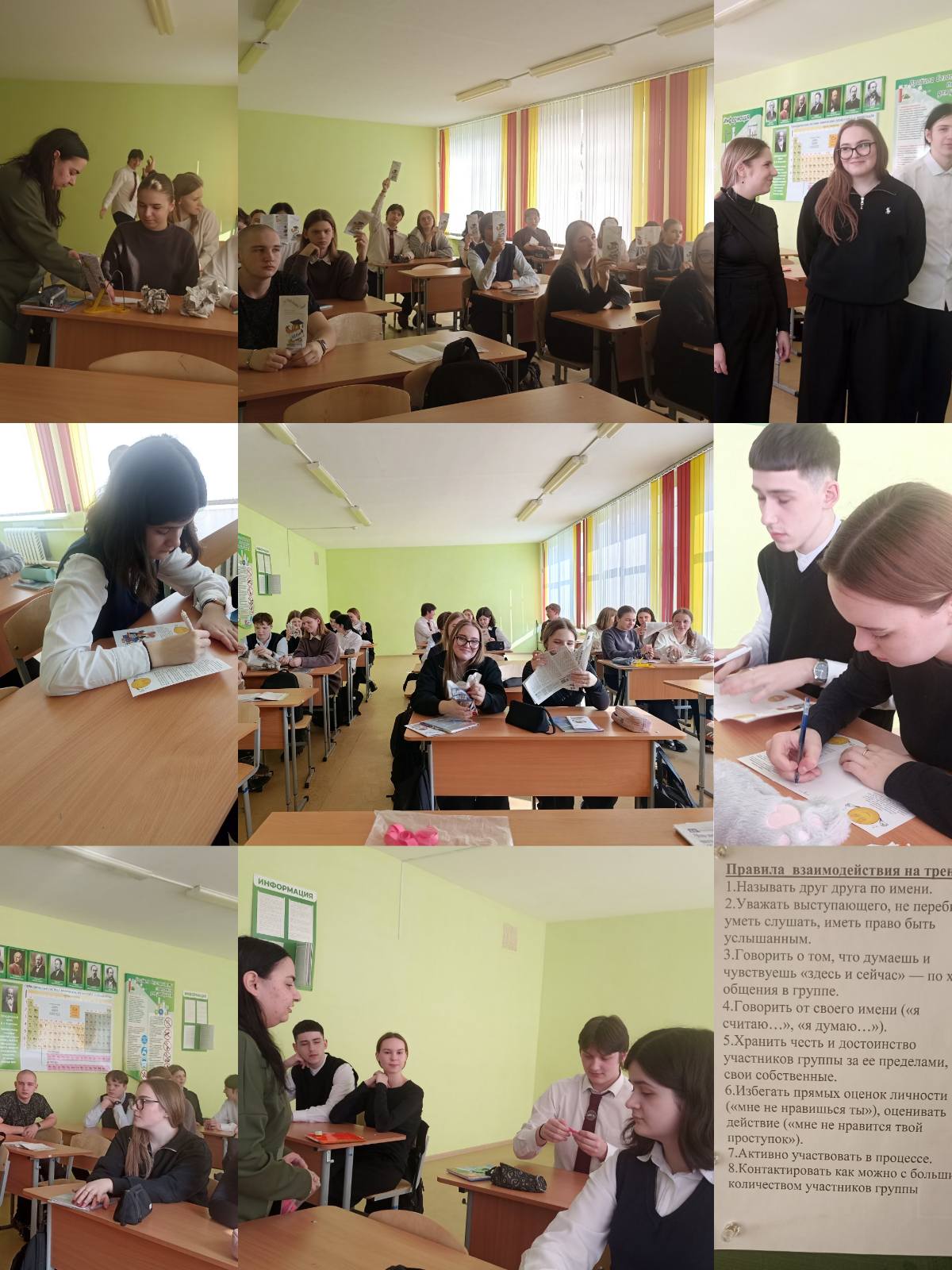 11 марта 2026 года в 11 классе прошел тренинг "Борьба со стрессом: стратегии подготовки к экзаменам". Участники обсудили значение экзаменов, стадии стресса, получили буклеты для записей, приняли участие в имитации экзаменационной ситуации и освоили технику снятия стресса "Газетный лист". В конце занятия учащиеся написали себе пожелания, ознакомились с советами по подготовке к экзаменам, дыхательными и релаксационными упражнениями, а также поблагодарили себя аплодисментами за отличную работу на тренинге.