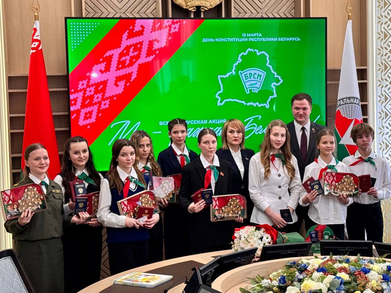 Кирик Ангелина, учащаяся ГУО " Средняя школа №2 г. Слонима", приняла участие в торжественной церемонии вручения паспортов в рамках Всебелорусской акции «Мы-граждане Беларуси!» в Центральной избирательной комиссии Республики Беларусь. Участники акции-это одаренная и талантливая молодежь нашей страны🇧🇾🇧🇾🇧🇾. Мы гордимся Ангелиной и желаем дальнейших успехов!✨