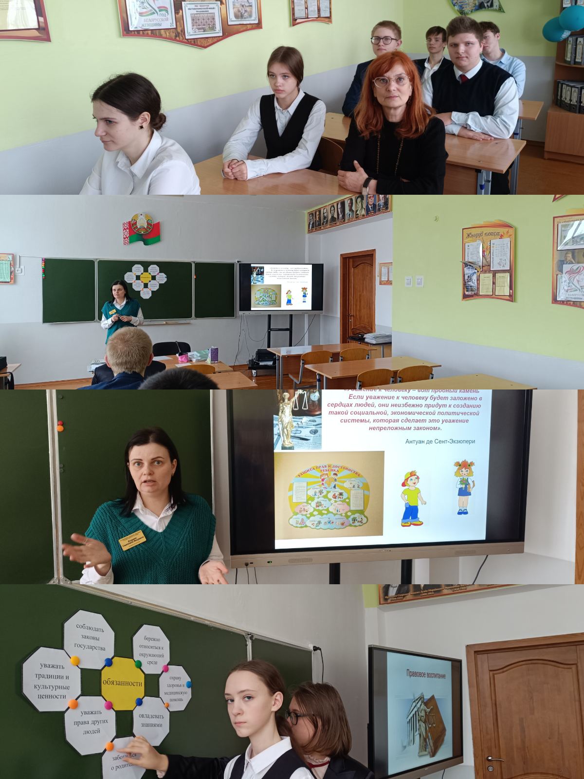 24.02.2026 в 8Б классе прошел классный час по теме "Права и обязанности". Учащиеся изучили статьи Конституции,в которых отражены права и обязанности гражданина. Учащиеся вспомнили о том,кто может получить звание Героя Беларуси и за какие заслуги.