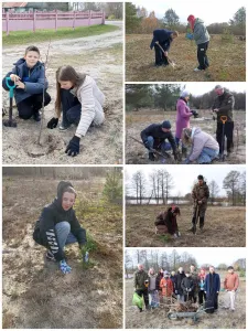 4 ноября учащиеся нашей школы совместно с сотрудником Слонимской инспекции охраны природы и окружающей среды, сотрудником газеты "Слонiмскi веснiк", клириком Спасо-Преображенского собора продолжили садить деревья и обустраивать территорию в районе озера в Лобазовке. Всего было посажено 228 деревьев.