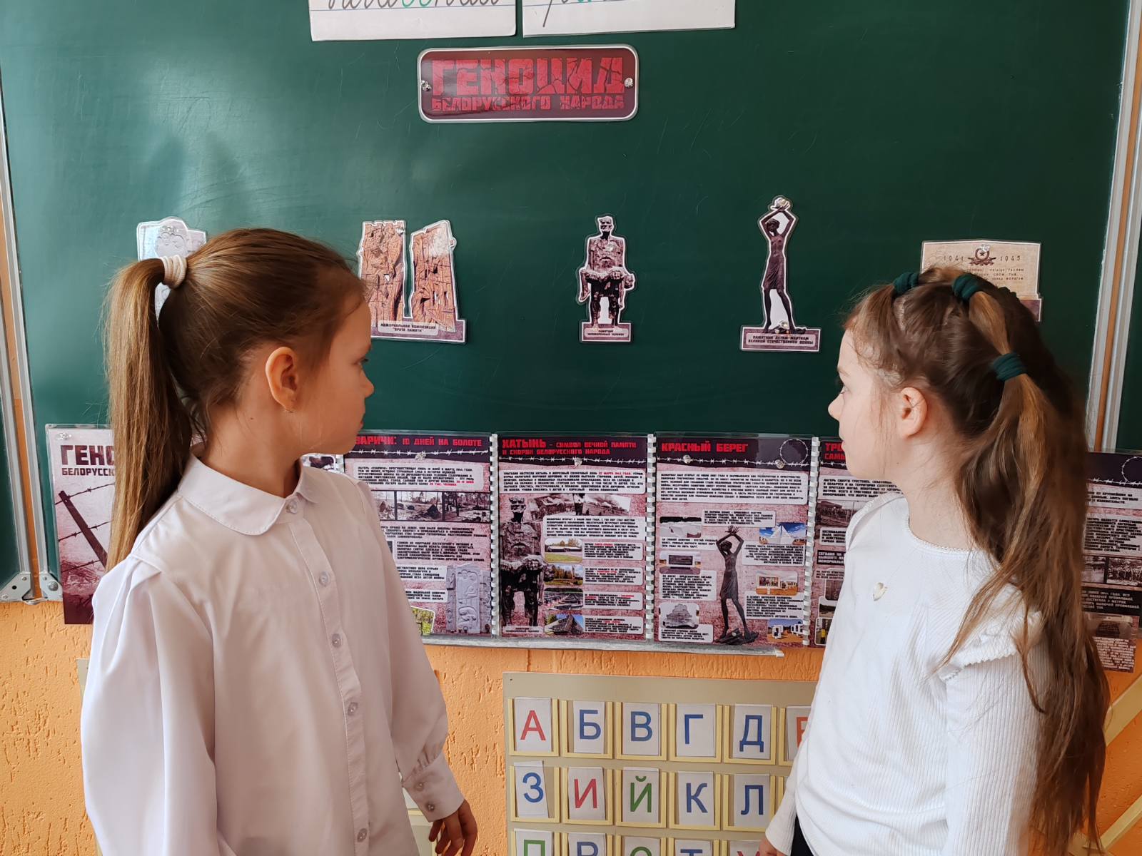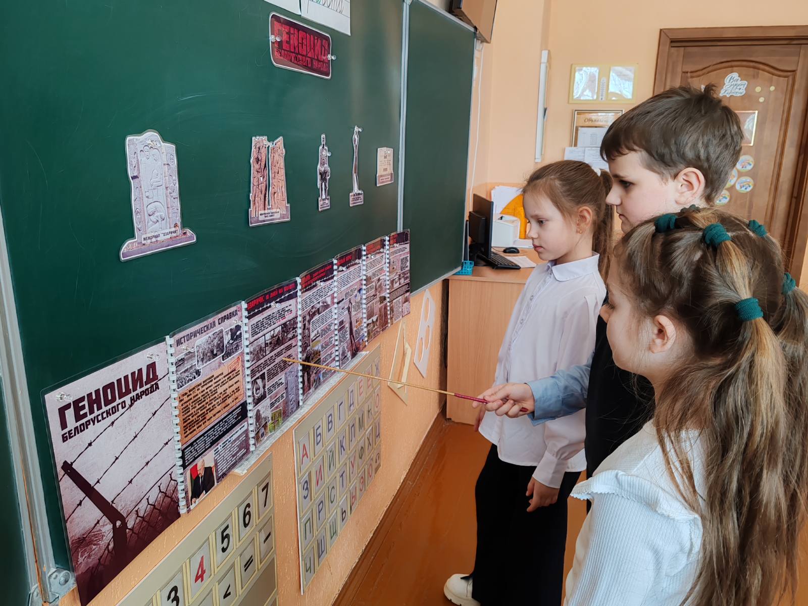 Учащиеся 2 "А" класса прикоснулись к истории белорусского народа, затронув тему "Геноцид белорусского народа в годы Великой Отечественной войны". Особенно поразило учащихся жизнь детей в концлагерях, расположенных на территории нашей страны.