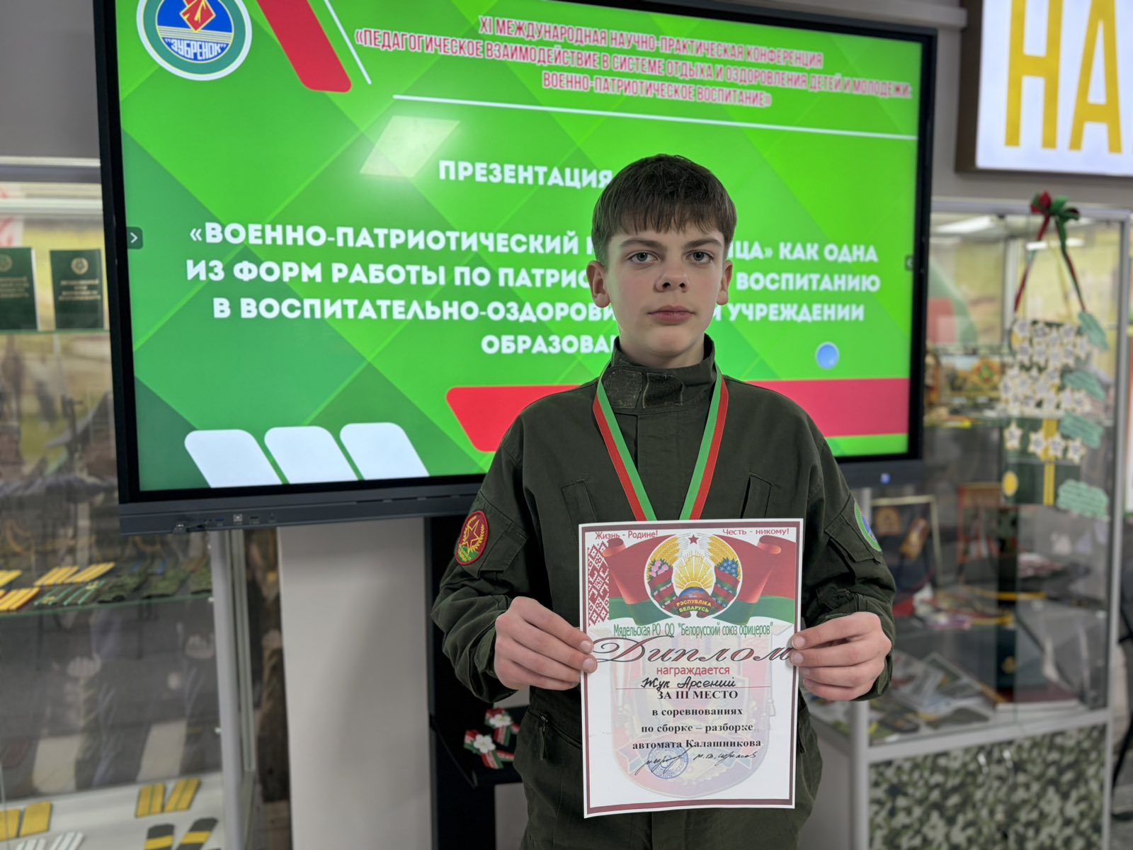 Жук Арсений и Совик Кирилл учащиеся 8 "Б" класса завоевали дипломы 3 степени по сборке-разборке автомата в лагере Зубрёнок.Поздравления руководителю Бычко С.К. за отличную подготовку учащихся военно-патриотического клуба "Форпост".