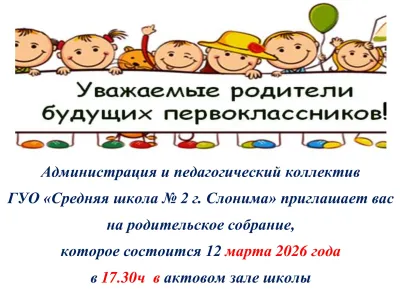 Уважаемые родители будущих первоклассников! Приглашаем Вас на родительское собрание, которое состоится 12 марта 2026 года в 17.30.