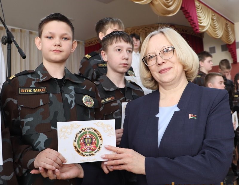 В торжестве приняли участие заместитель начальника управления образования Слонимского райисполкома Марина Александровна Еремейчик, заместитель начальника РОВД по идеологической работе и кадровому обеспечению подполковник милиции Александр Игоревич Калинин, священнослужитель Павел Моряков, а также директор учреждения образования Людмила Николаевна Лопатей, руководитель по военно-патриотическому воспитанию Сергей Казимирович Бычко, классные руководители, учащиеся и самые близкие и родные люди.