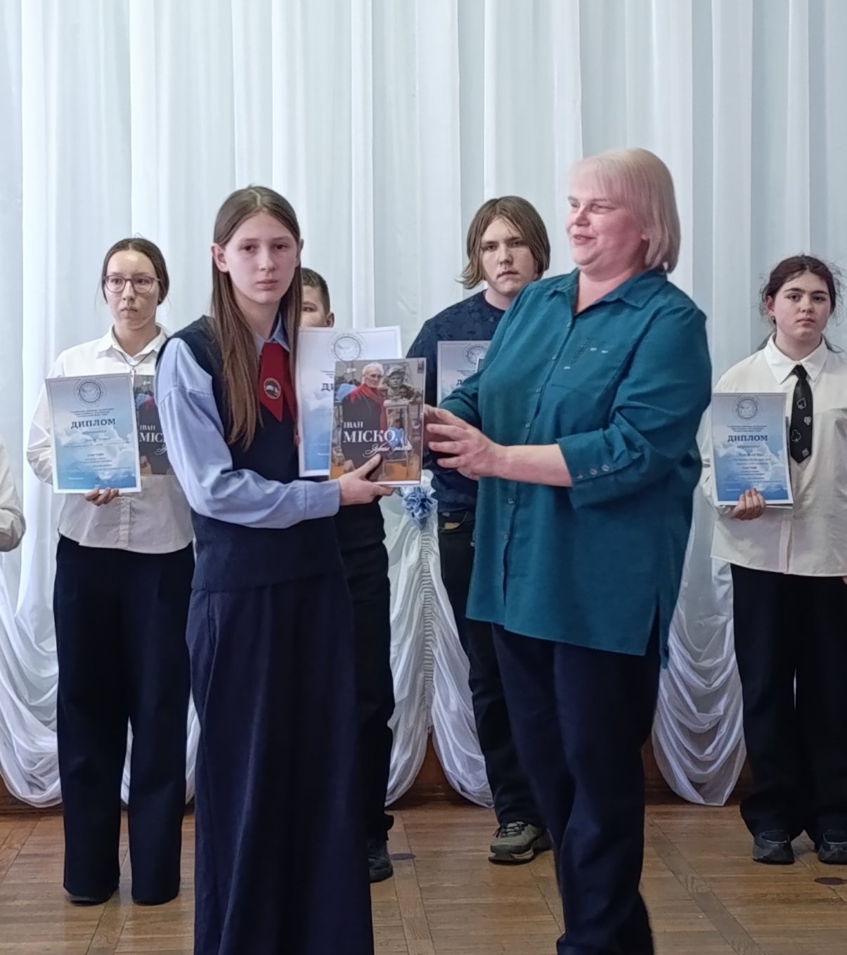 2 апреля учащиеся средней школы № 2 г.Слонима Бобров Назар, Ерш Анастасия, Дели Ксения приняли участие в церемонии награждения по итогам районного этапа конкурса «Космос объединяет». Председатель Слонимской районной организации ОО «Белорусский фонд мира» Нина Викторовна Рудая в торжественной обстановке вручила победителям в подарок книгу, автором которой является наш земляк, "космический" скульптор, народный художник Беларуси и Почетный гражданин нашего района Иван Якимович Миско.